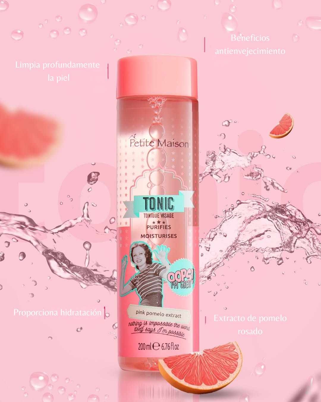 Gel de ducha de toronja rosa con glicerina y vitamina E, que limpia suavemente y deja la